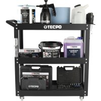 TECPO Werkstattwagen 300 kg Tragkraft | 3 Ebenen mit Schutzmatten | stabiler Stahl-Werkzeugwagen mit Lenkrollen für professionelle Werkstätten