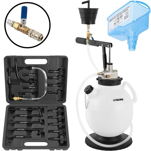 TECPO Getriebeöl-Einfüllgerät 7,5 L mit 20 Adapter + Einfülltrichter